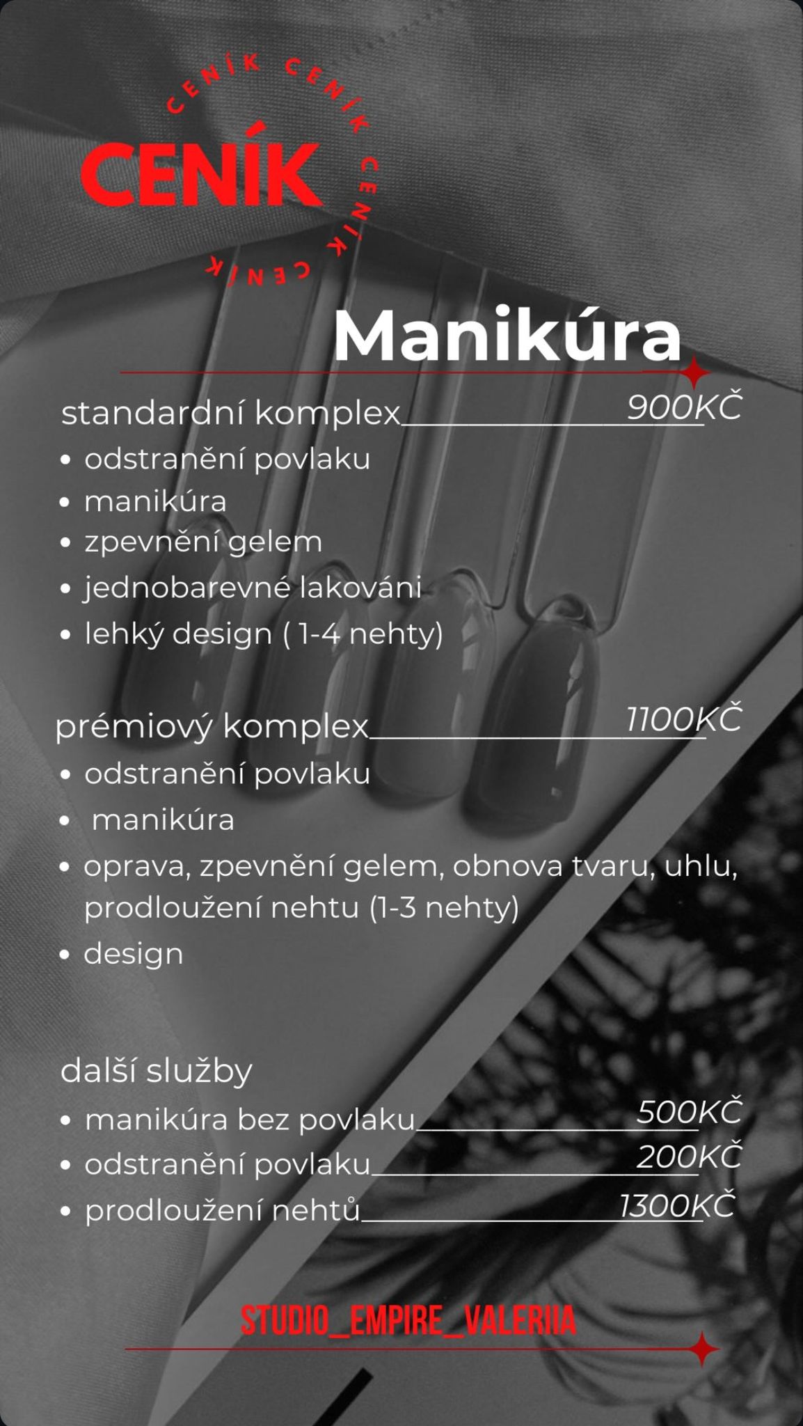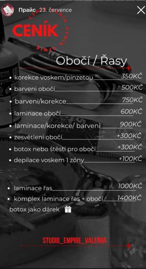 Vítejte ve Studiu Empire, kosmetickém salonu v Praze, kde se snoubí krása s péčí na nejvyšší úrovni. Nabízíme dokonalé služby v oblasti řas, obočí, kosmetiky, manikúry, pedikúry a omlazovacích kúr. Dopřejte si chvíli jen pro sebe a objevte skutečný pocit výjimečnosti.
